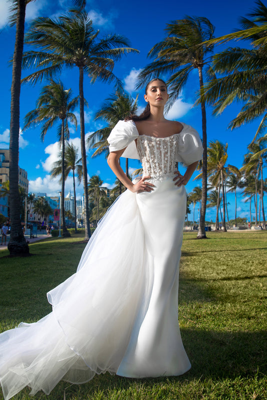 Now he brings his vision and talent to the colorful Sunshine State and America with his new bridal line.
